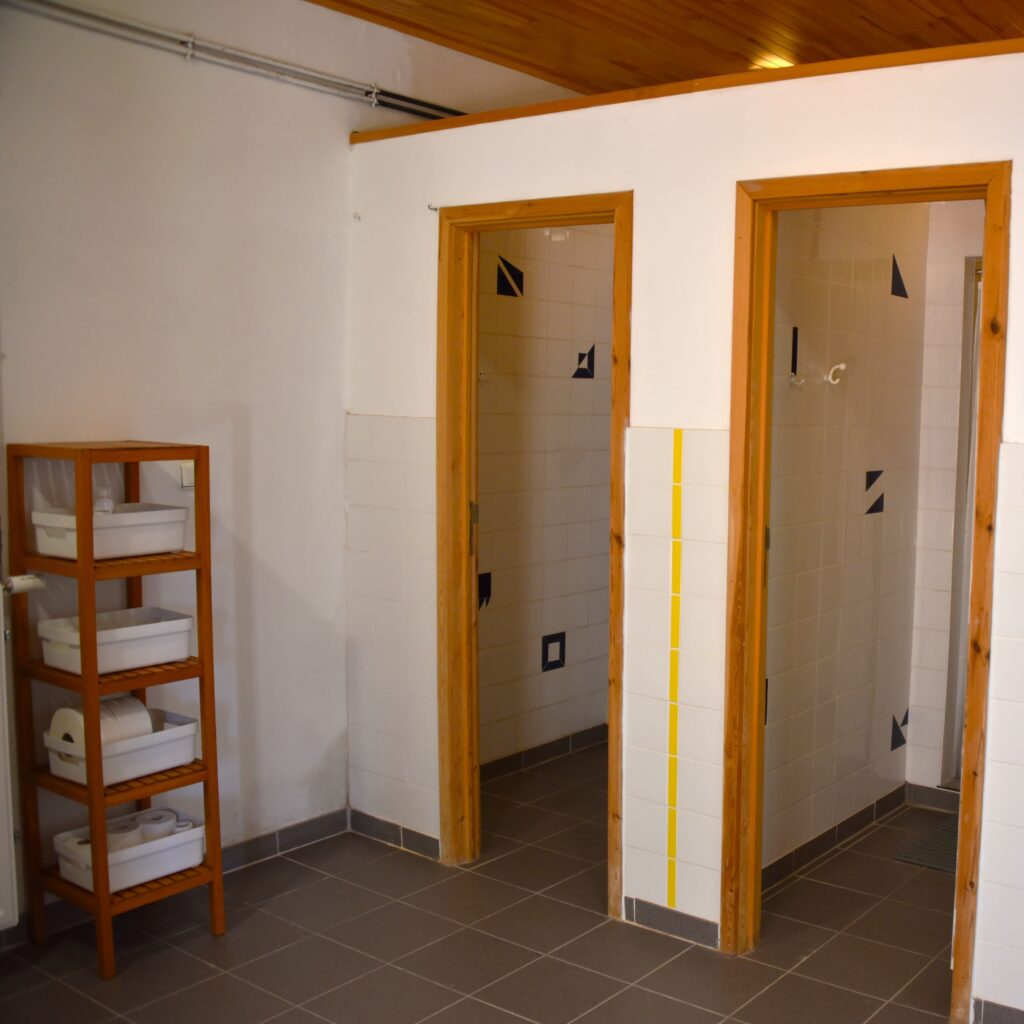 L’espace sanitaire comprend 3 douches, éviers, et toilettes.